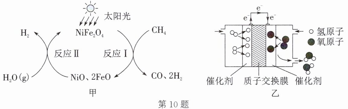 (1) 制取氢气:一种以${NiFe_{2}O_{4}}$为催化剂制氢的反应原理如图甲所示。