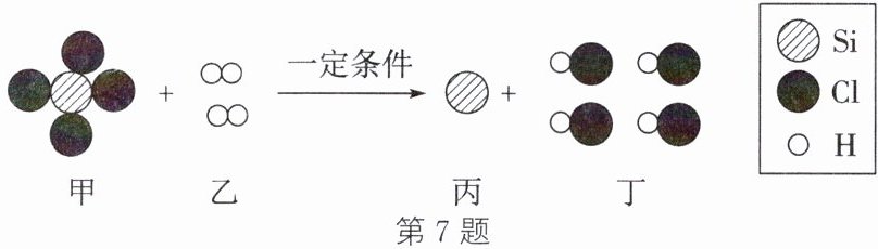 7. (科技民生)2025 年我国人工智能技术迈向新台阶,尤其是国产 DeepSeek 被广泛关注和应用。人工智能芯片的主要成分是硅,如图为工业制取高纯硅(Si)的某一步反应微观示意图。下列说法不正确的是(