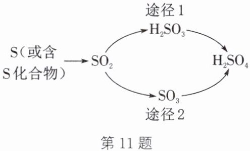 ② 途径2中SO₂在空气中被粉尘催化,发生氧化反应后得到SO₃,请写出此步反应的化学方程式: