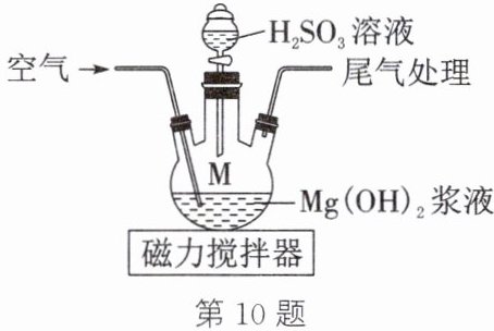 10. (2024·镇江)SO₂溶于水生成H₂SO₃。实验室模拟“镁法工业烟气脱硫”制备MgSO₄,装置如图所示。