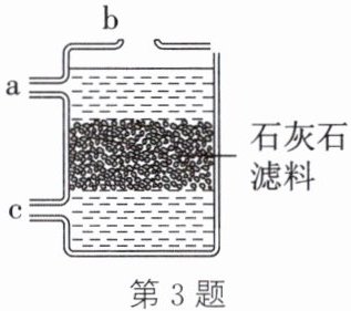 3. (2025·福建)兴趣小组设计如图所示装置用于模拟工业处理含硫酸的废水。实验时,废水从c口进入并保持流速不变,${CaCO_{3}}$与${H_{2}SO_{4}}$反应有${CaSO_{4}}$(微溶)和${CO_{2}}$生成。由于气流和水流的作用,石灰石滤料不断翻滚摩擦。下列说法错误的是(