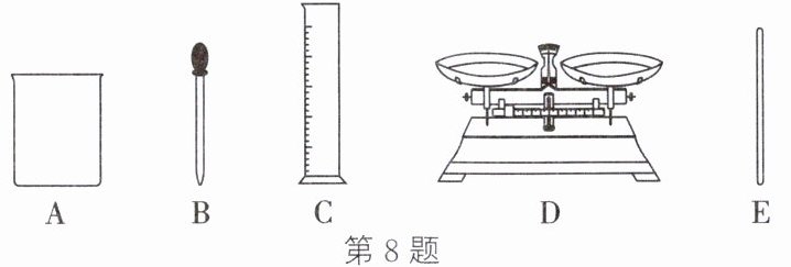 8. (2025·辽宁)同学们发现某绿植出现倒伏现象,施用氯化钾溶液可改善其症状。现配制 100 g 溶质质量分数为 3%的氯化钾溶液(用时稀释)。实验所需部分仪器如下: