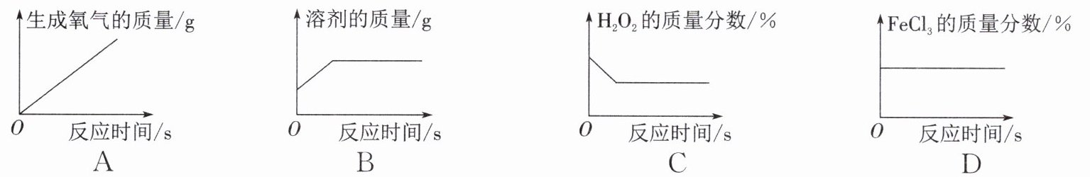C项:过氧化氢质量分数随反应进行逐渐减小至0,C错误;