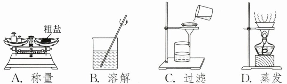 14. 粗盐的初步提纯实验,通过观察可以发现,四幅画面中操作规范的是(