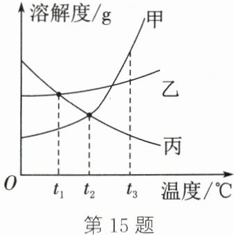 15. 甲、乙、丙三种物质的溶解度曲线如图所示,下列分析错误的是(