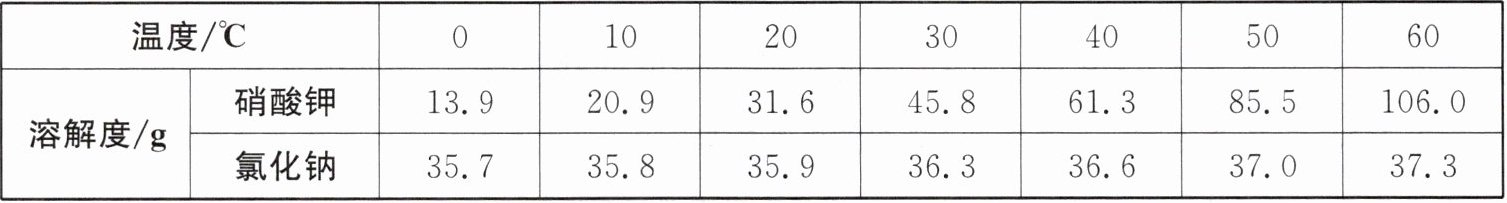 g。(2) $ 60^{\circ}C $时,$ 200gKNO_3 $溶液中含溶质 $ 100g $,将该溶液降温至 $ 20^{\circ}C $,可析出 $ KNO_3 $