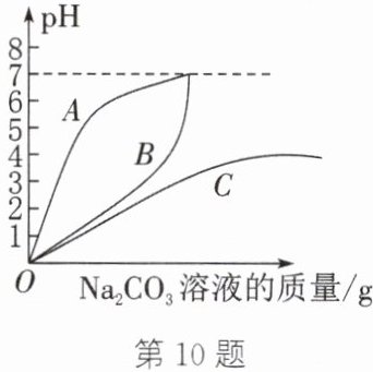 (2) 随着碳酸钠溶液的质量的增加,测得烧杯内溶液的pH变化,并绘制出相应的曲线,与图中A、B、C三条曲线中的