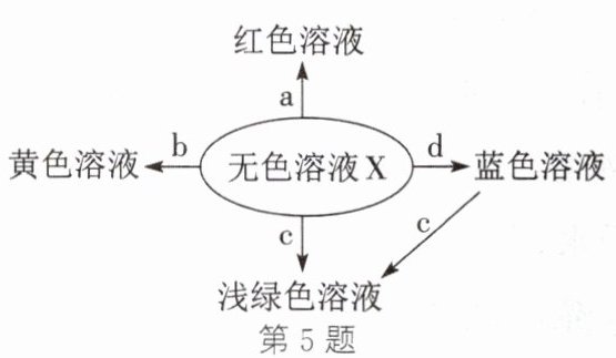 5. 如图表示化学反应中溶液的颜色变化,下列叙述错误的是(
