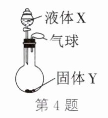 4. 如图,将少量液体 X 加入烧瓶中,观察到气球逐渐膨胀。液体 X 和固体 Y 的组合如表所示。