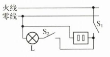 3. 分析插座的连接:插座要与灯泡并联,才能独立工作,按照“左零右火”的原则,零线接插座左孔,经过S₁后的火线接插座右孔。