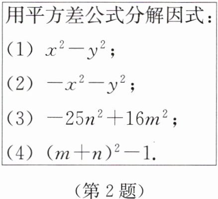 (2)$-x^2 - y^2=-(x^2 + y^2)$,两项符号相同,不能用平方差公式。