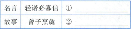 (1) 新素养 文化自信 古代先哲在思考“信”这一道德规范时,给我们留下了丰富的精神财富。请你再搜集中国古代关于诚信的一条名言和一个故事填在下表相应的空白处。
