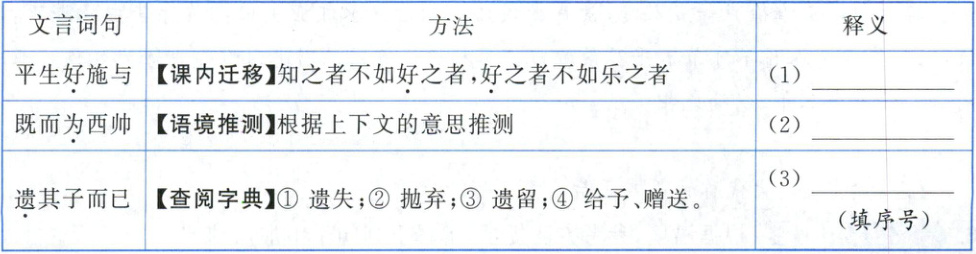 其子而已。10. 新趋势 方法借鉴 根据表格中提示的方法,解释下列句子中加点的词。