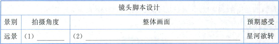 16. 新趋势 实践探究 下面是一个短视频的脚本,请你根据这首诗的后两联补全表格内容。