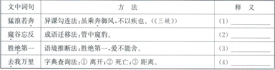 9. 新趋势 方法借鉴 文言词语的理解,有很多种方法。请你参照表格中提示的方法,解释下列句子中加点的词。
