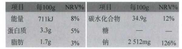 备注:1克盐约含400毫克钠;NRV指营养参考价值。