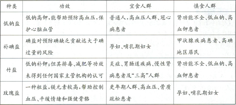 超市食盐种类汇总表