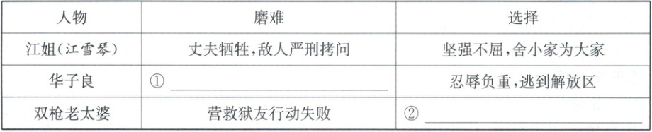 )答案:7.(1)①被关押在白公馆 ②勇往直前,接受筹划突袭合作所任务 (2)①江姐(或:江雪琴) ②小萝卜头(或:宋振中) ③甫志高