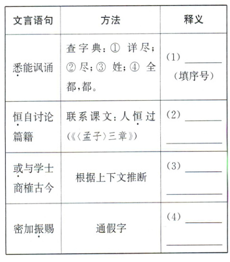 1. 请根据下面表格中的方法,解释加点词。