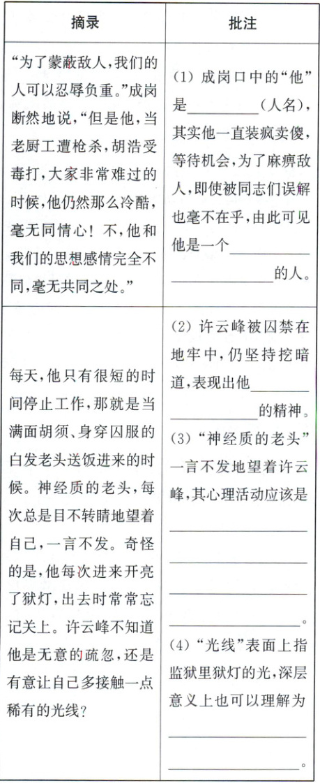 1. 下面是一位同学在阅读《红岩》时所作的批注,请你将之完善。
