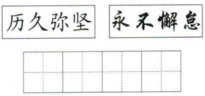答案:1.(1)示例一:历久弥坚(用正楷书写) 示例二:永不懈怠 (用行楷书写) (2)lán 屈 (3)恣 姿 (4)传承