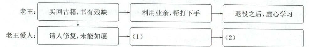 15.(1)从表达效果上看,顿号停顿时间短,使整句话读起来更有急促感;此处用顿号将修复古籍的工序一一罗列,给人真实感;具体展现了修复古籍的复杂性(工序多,难度大,操作烦琐);为下文表现老王爱人的耐心专注、坚持热爱作铺垫。 (2)从表达效果上看,逗号停顿时间更长,使整句话读起来更绵长;