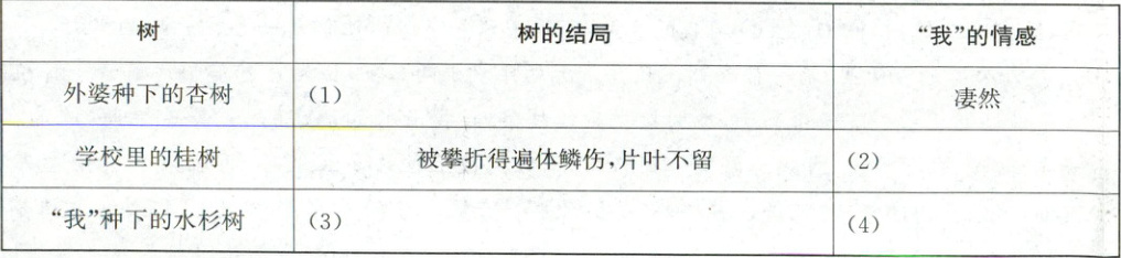 11. 本文是以“树”为线索行文的,请通读全文,完成表格。(4 分)