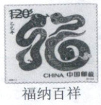 5. 中国邮政为乙巳蛇年发行了邮票(见右图),你参考邮票在命名和图案设计上的特点,也设计了一张蛇年邮票。请用说明的表达方式介绍自己的设计。(6分)