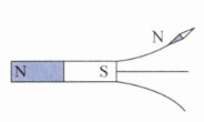 3. 在图中条形磁体的左端标注“N”,右端标注“S”,标注符合上述结论即可。