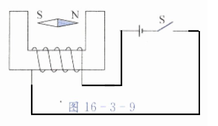 13. 请将图 16-3-9 所示的电路连接完整(要求:开关闭合后,电磁铁旁的小磁针能静止在图中位置)。
