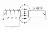 根据磁极间的相互作用规律“异名磁极相互吸引”,通电螺线管右端为N极,因此永磁体靠近螺线管的一端为S极,所以永磁体的B端为N极。