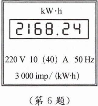 6. 小明4月底观察到家里的电能表如图所示,5月底再观察时,发现电能表示数为$\boxed{2318.24}$ ,则: