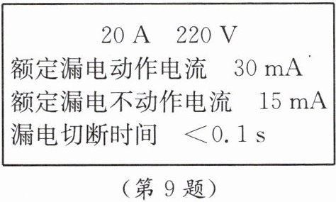 9. 小明家安装的漏电保护断路器的铭牌信息如图所示。根据图中信息可以判断,下列说法中正确的是(