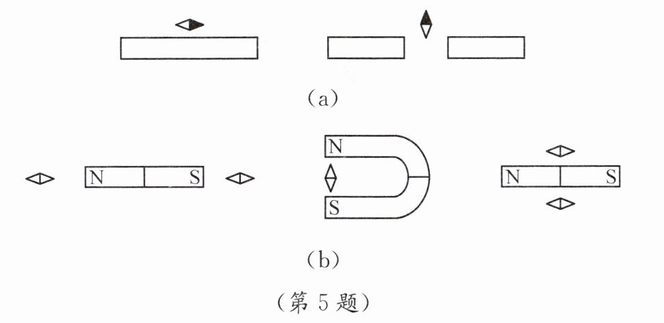 5. (1)根据图(a)中小磁针静止时的位置(黑端为N极),标出各磁体的N、S极。