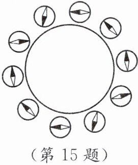 15. 小磁针在条形磁体周围不同位置时的指向不同,说明