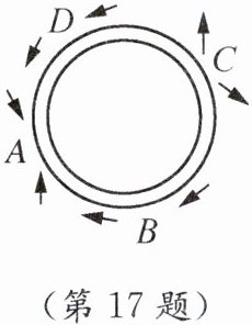 17. 放在水平桌面上的圆纸盒内有一个条形磁体,圆纸盒外部小磁针N极的指向如图中箭头所示。圆纸盒内条形磁体的N极靠近