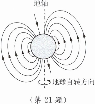 21. 我国宋代科学家沈括在《梦溪笔谈》中最早记载了地磁偏角:“以磁石磨针锋,则能指南,然常微偏东,不全南也。”进一步研究表明,地球周围地磁场的磁感线分布如图所示。关于地磁场,下列说法中正确的是(