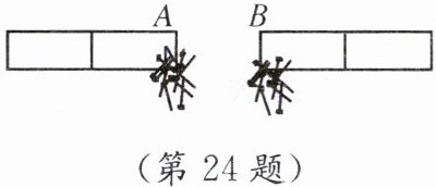 24. 如图所示,相距一定距离的两个条形磁体,它们的A、B端分别吸住了若干大头针。当A、B端相互接近时,两者会相互吸引并自动对接到一起;两磁体对接后,大部分大头针下落。