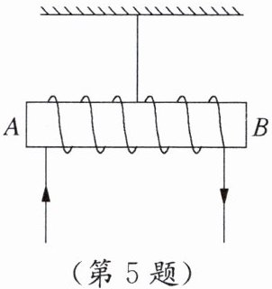 5. 如图所示,把螺线管沿东西方向水平悬挂起来,然后通电,看到的现象是通电螺线管(
