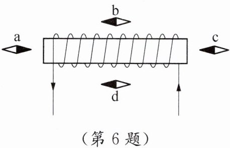 6. 如图所示,通电螺线管周围有四个静止的小磁针a、b、c、d(涂黑的一端表示N极),其中指向错误的是(