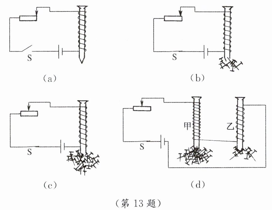 13. 为探究电磁铁的磁性与哪些因素有关,小华作出以下猜想。