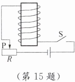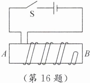 16. 如图所示的双线螺线管中插有一根铁芯。开关S闭合后,(