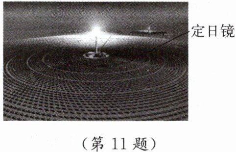 11. 如图所示,“超级镜子发电站”——甘肃敦煌 $100\ MW$ 熔盐塔式光热电站正在并网发电。1.2 万多面定日镜在计算机的控制下,将太阳光反射到塔顶的吸热器上,吸热器吸收热量后加热熔盐,高温熔盐与冷水进行热交换,通过蒸汽发生器产生高温蒸汽推动汽轮发电机发电。下列说法中正确的是(