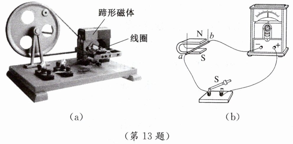 13. 如图(a)所示是一个手摇交流发电机模型。老师在课堂上演示时,不少同学注意到下列现象,请你对这些现象作出解释或做进一步探究。