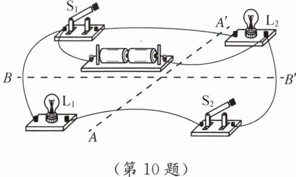 )。A.挡板沿$AA'$固定,灯泡$ L_{1}$显示操控开关$ S_{1}$的人发出的信息