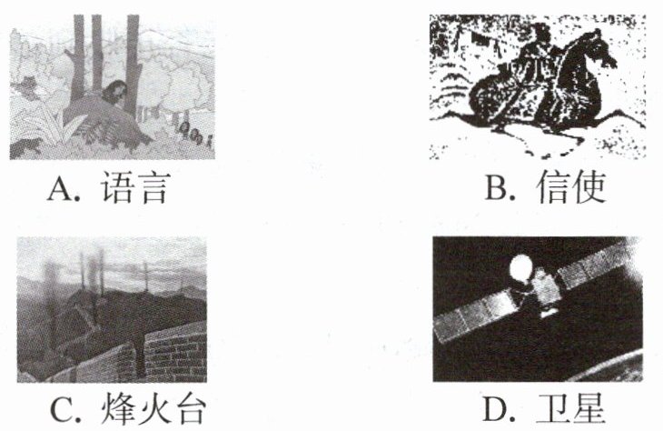 题目要求选择利用微波传播信息的方式,微波是指频率较高的一类电磁波,在现代通信中被广泛应用,例如卫星通信。选项中,只有卫星通信利用了微波进行信息的传递,其他选项如语言、信使和烽火台均不涉及微波的使用。