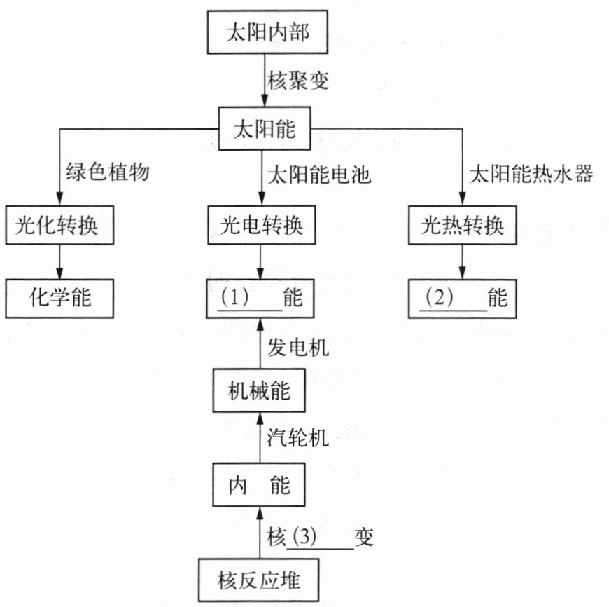 10. 小阳学习了太阳能和核能的知识后,建立了利用核能的知识结构图,请你帮他补全空格处的内容。