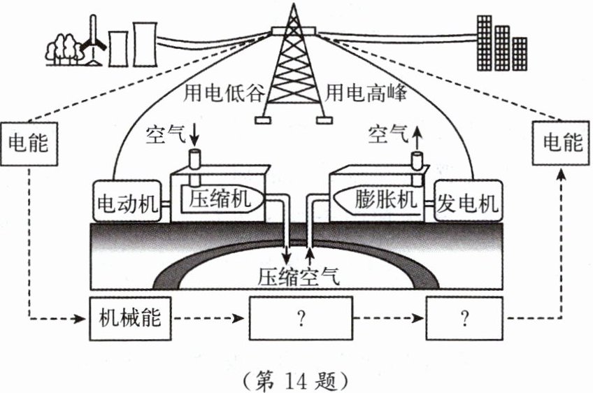 14. 2024年4月30日,300 MW先进压缩空气储能电站在我国并网发电,其工作原理如图所示。在用电低谷时段利用电网多余电能驱动压缩机压缩空气,使空气