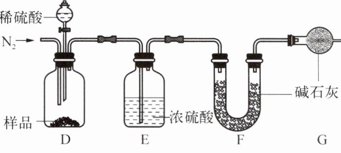 ② 实验后,测得装置 F 增重 0.88g,则 20.0g 固体中 FeCO₃的质量分数为