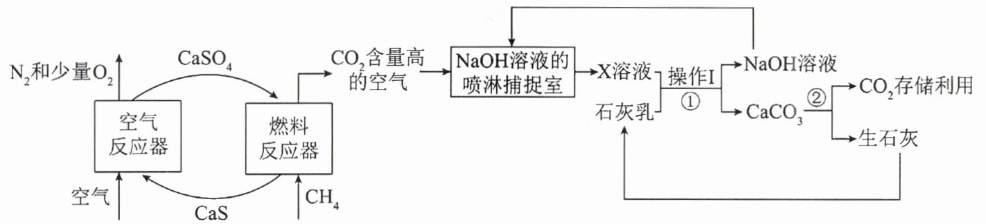化学链燃烧技术是利用载氧体将空气中的氧传输至燃料的新技术,利用化学链燃烧技术捕捉甲烷燃烧所产生的 CO₂,再利用 NaOH 溶液喷淋捕捉 CO₂的工艺流程图如下:
